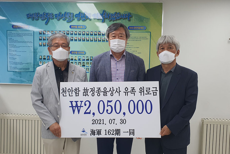 2021년 7월 30일 해군충무회 중앙회장(강용남), 상임고문(김동규), 해군 병 162기 회장(이희우), 부회장(전대갑)은 재단 사무실을 방문하여 십시일반 모은 성금 205만 원을 정주한 군을 위해 써달라고 기탁하였습니다. 이들은 "해군 가족의 아픔을 그냥 두고 볼 수 없었다. 주한 군이 올바르게 성장할 수 있도록 관리해 달라"고 당부하였습니다.